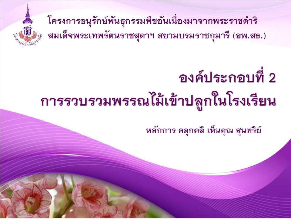 องค์ประกอบที่ 2 การรวบรวมพรรณไม้เข้าปลูกในโรงเรียน