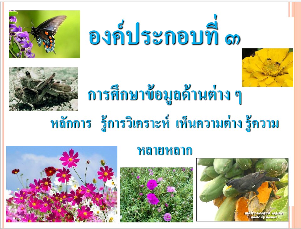 องค์ประกอบที่ ๓ การศึกษาข้อมูลด้านต่าง ๆ หลักการ รู้การวิเคราะห์ เห็นความต่าง รู้ความหลายหลาก